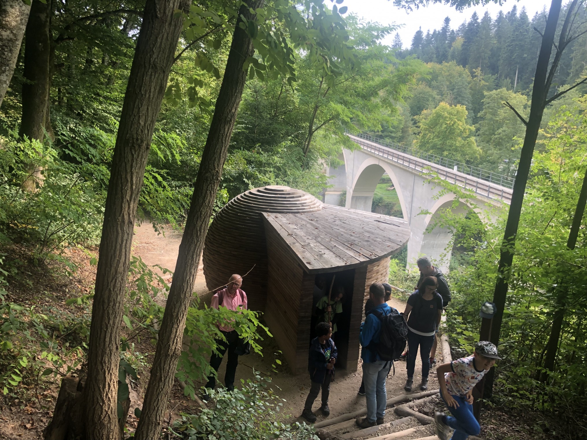 Am 26.09.2021 trafen sich 24 Personen um 10:00 Uhr auf dem Schulparkplatz in Gründelhardt, da man ein gemeinsames Ziel hatte: EINS und ALLES bei Welzheim. Mit privaten PKWs fuhren wir mit Vorfreude und Spannung dorthin. Dort angekommen verteilten wir uns über den Park und genossen erst einmal den Spielplatz mit verschiedenen außergewöhnlichen Geräten. Einige Kinder begnügten sich für eine Weile damit, dass sie mit der Straßenkreide Bildergeschichten malen konnten. Von dort aus ging es in den Wald, den Hang hoch. An Tieren vorbei bis wir zu den verschiedenen Stationen kamen. Mit einem Barfußpfad, verschiedenen Balancierstationen und Klangwäldern konnten wir unsere Sinne trainieren. Im Wald konnte man sich auf die Hängematten legen und den Geräuschen lauschen. Nach einer kleinen Pause ging es dann noch zum Niederseilgarten und Naturkino. Groß und Klein, Jung und Alt haben die gemeinsame Aktion sehr genossen.