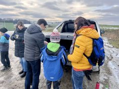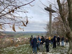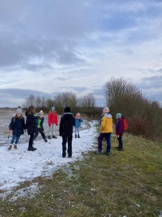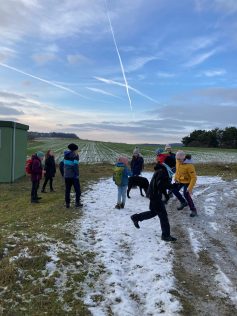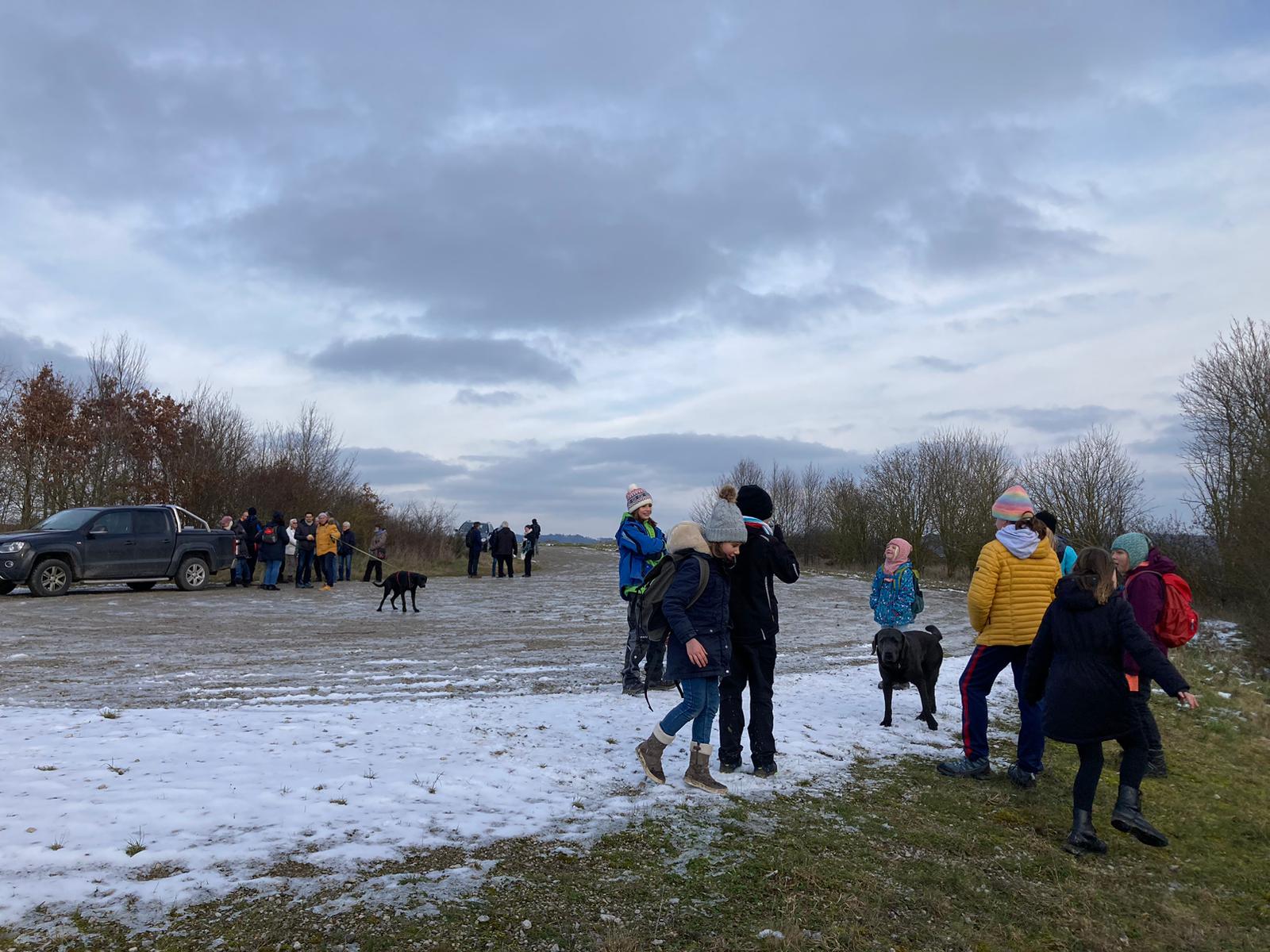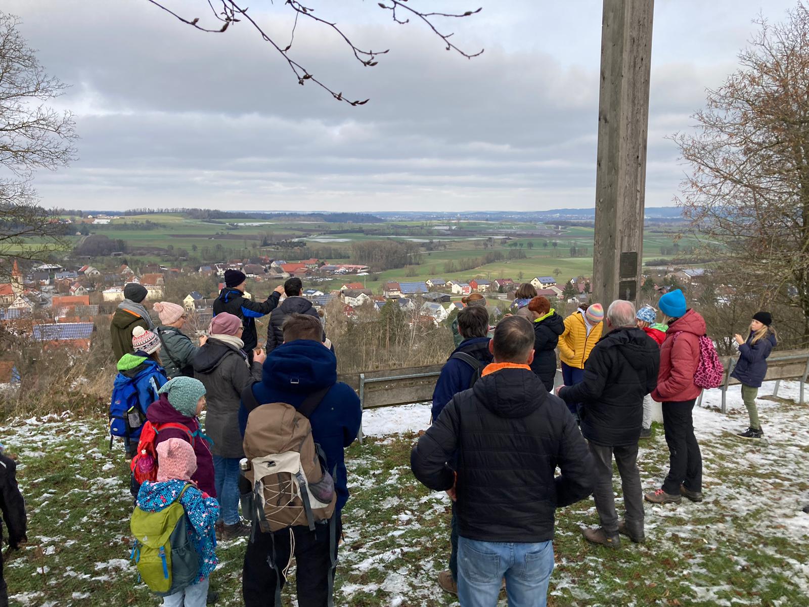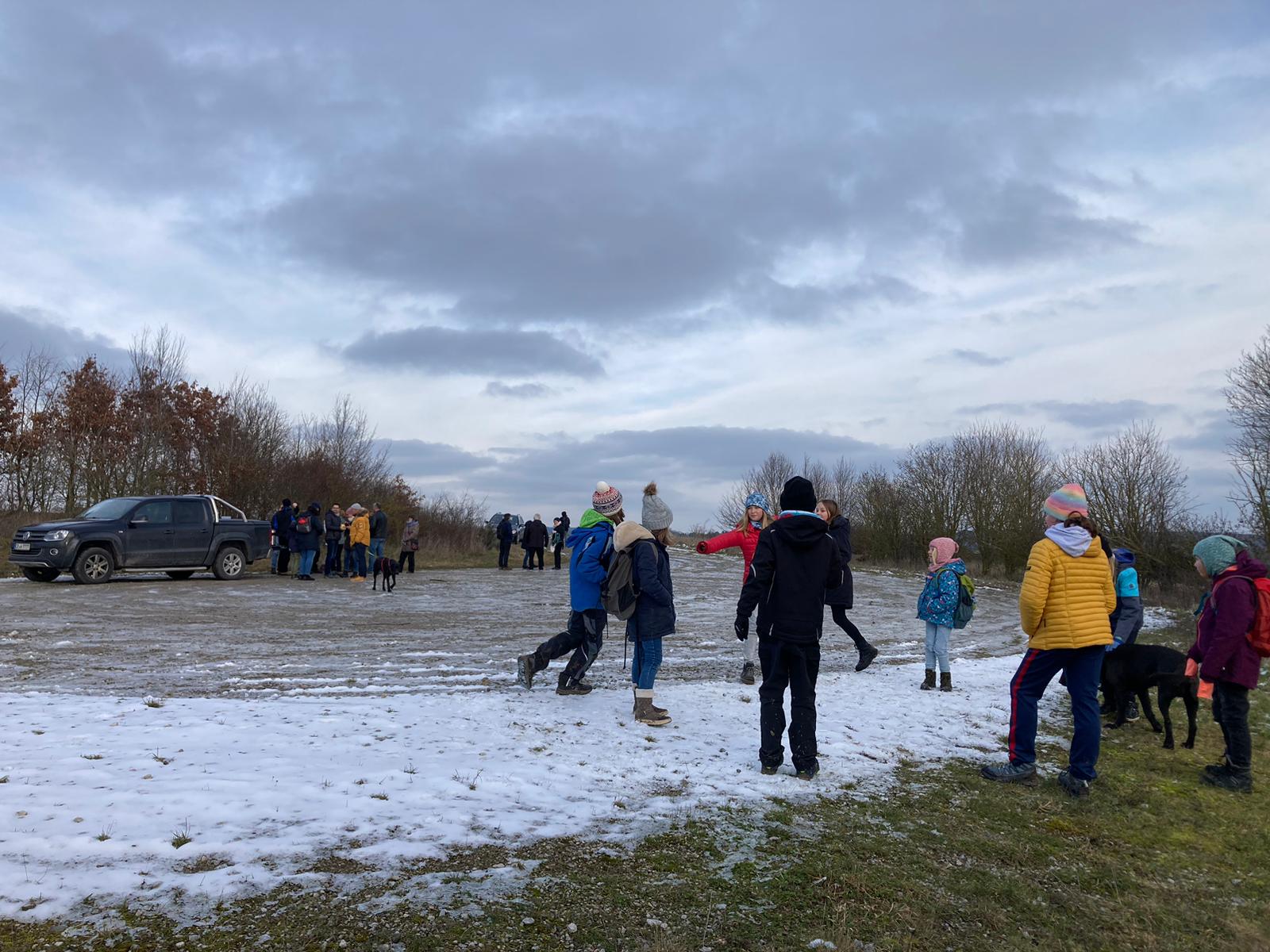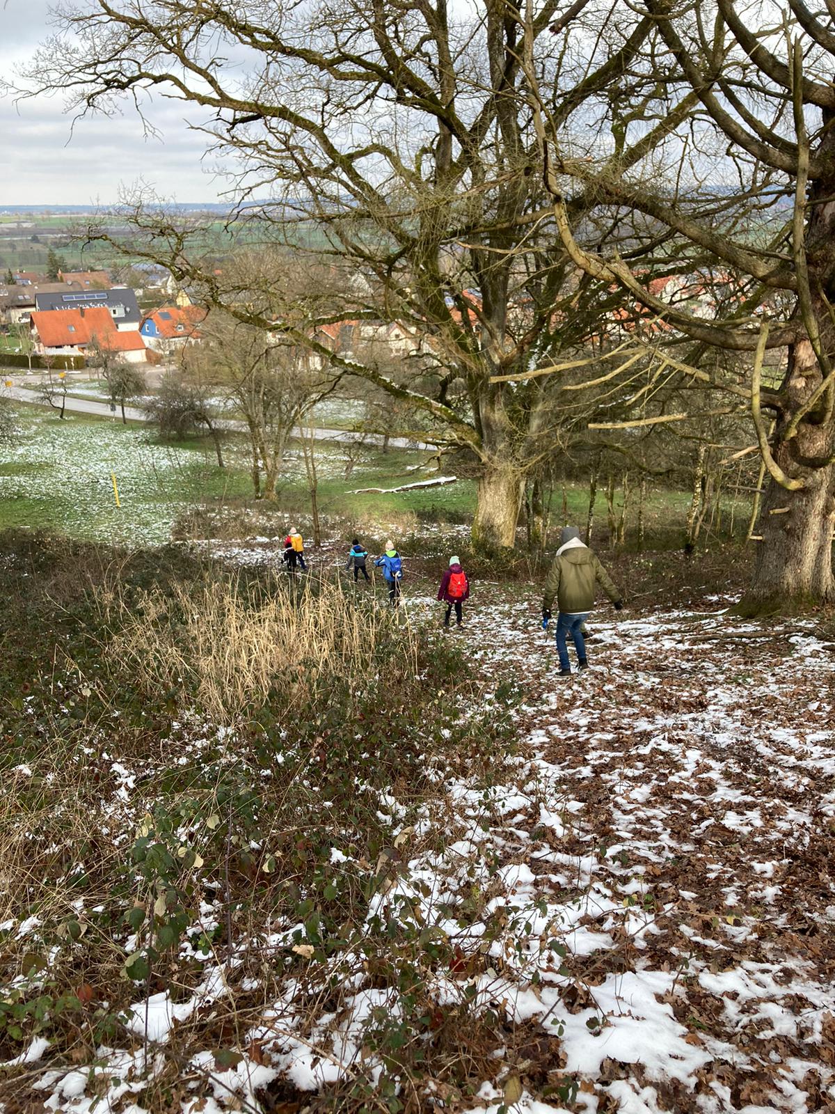 22 Erwachsene, 11 Kinder und 2 Hunde trafen sich bei schönem Winterwetter an der Kirche in Honhardt.