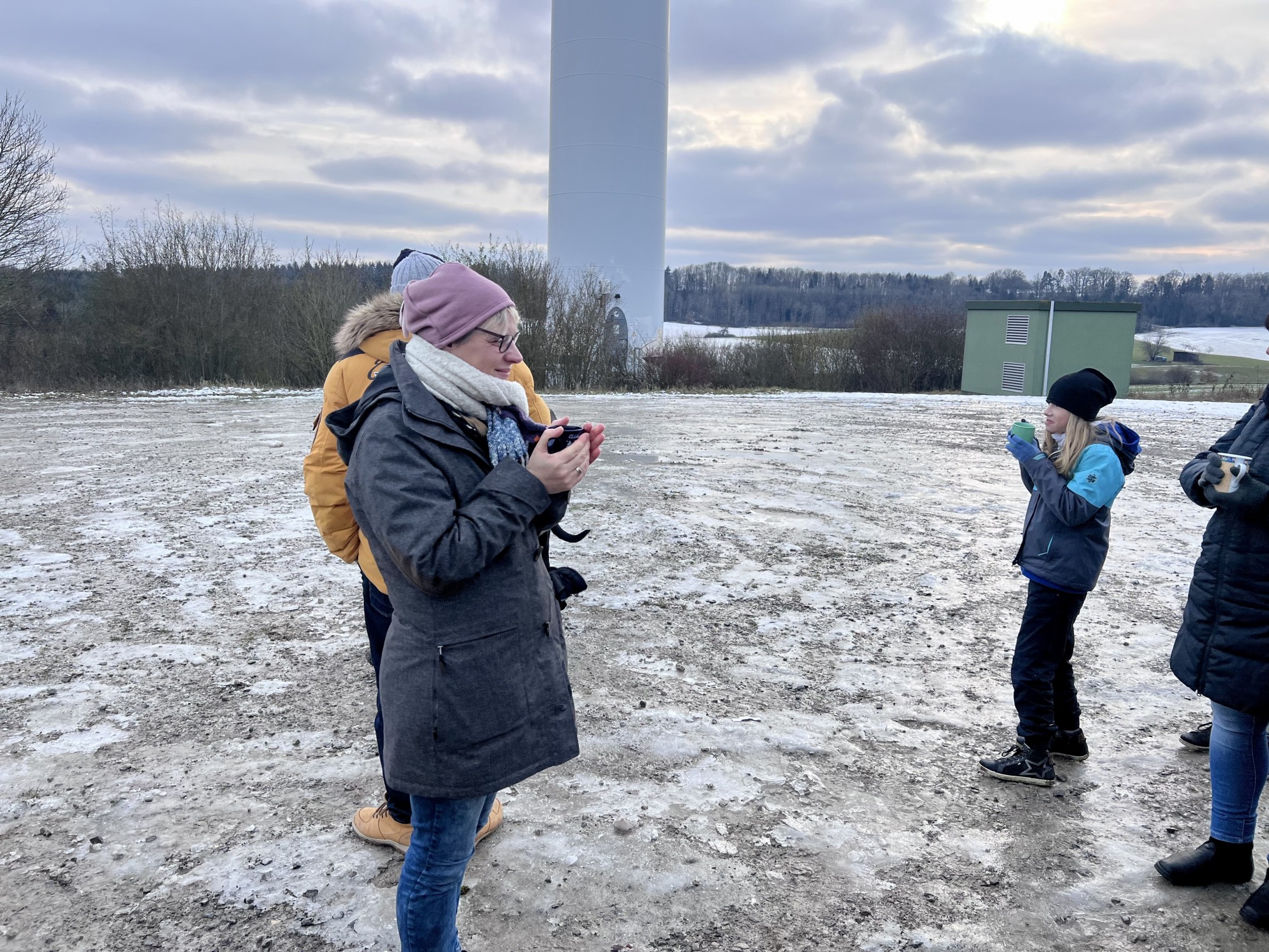 Nach einer kurzen Pause ging es weiter, über Feld und Wiesenwege am Waldrand entlang bis zum Windrad.