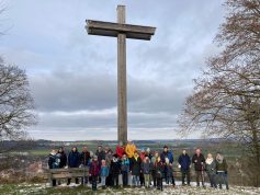 Die Wanderung begann gleich mit einem steilen Anstieg zum Sandbergkreuz. Oben angekommen gab es eine kleine Belohnung für Jung und Alt und die schöne Aussicht wurde genossen.