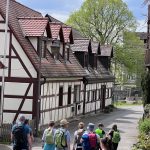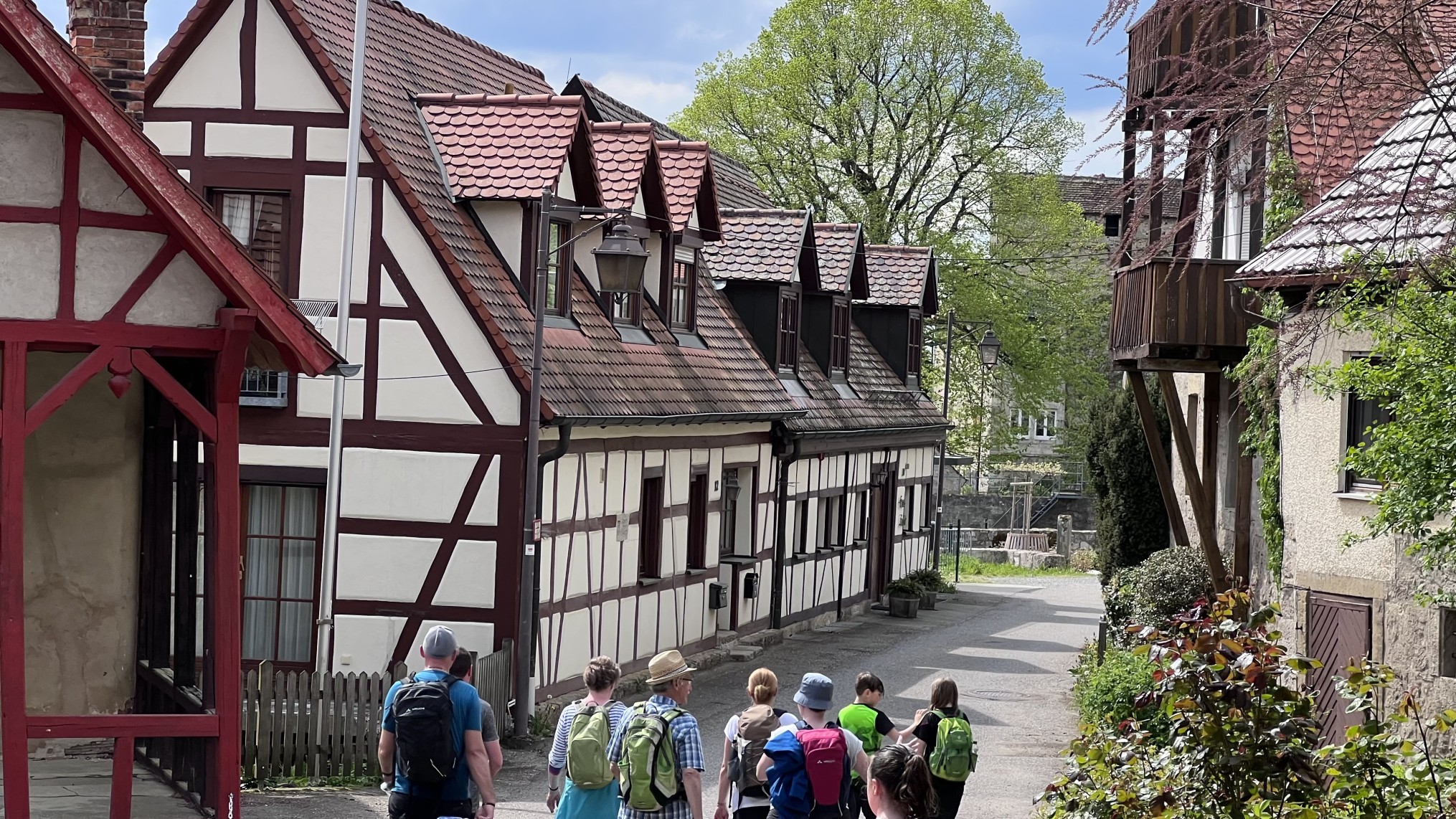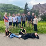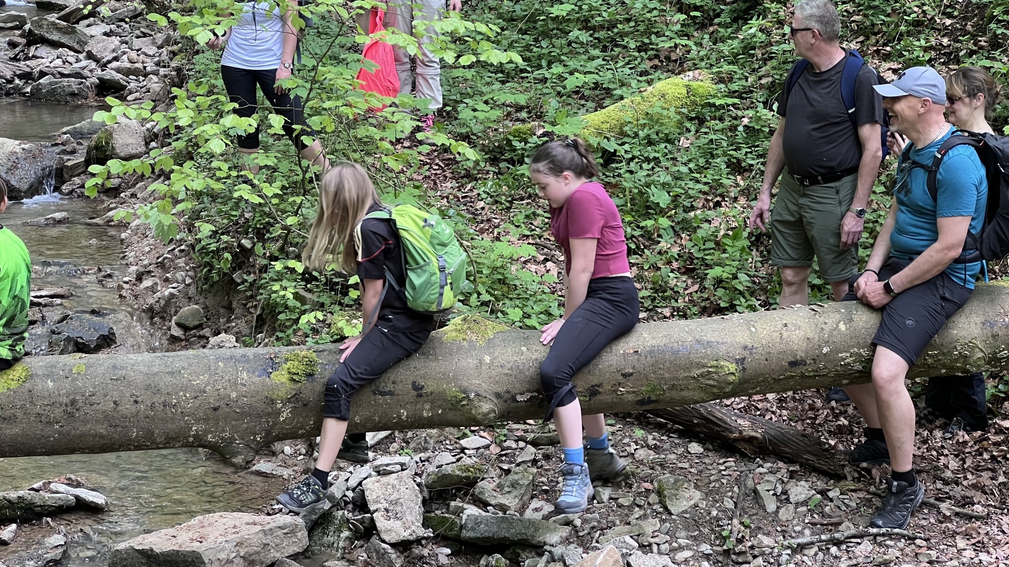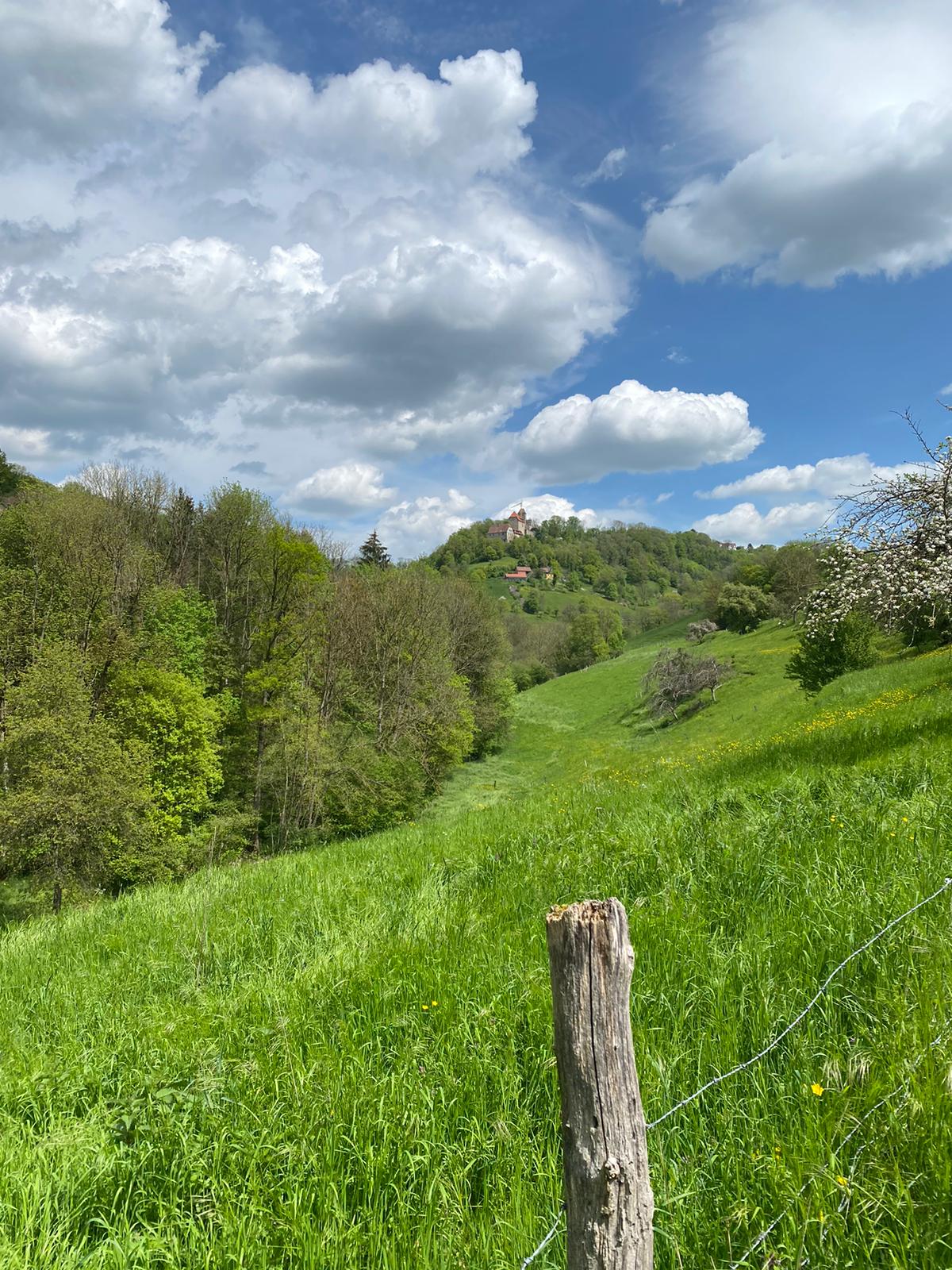 Am Sonntag den 7. Mai trafen sich interessierte Wanderer am Schulparkplatz in Gründelhardt. Das Ziel? Eine Überraschung, denn es war eine „Surprise Wanderung“. Deshalb freute es uns sehr, 10 Erwachsene und 3 Kindern begrüßen zu dürfen. Unser Wanderführer Walter gab dann die ersten Details der Ganztageswanderung bekannt. Es wurden Fahrgemeinschaften gebildet und sich auf den Weg nach Kocherstetten gemacht. Dann ging es recht schnell. Die Autos wurden geparkt, die Wanderstiefel angezogen und dann gab es kein halten mehr. Wir wanderten los. Zuerst den Berg hinunter, wo wir den Kocher überquerten um dann ein Stück auf dem Kocher-Jagst Radweg entlang nach Steinkirchen zu wandern. Hier machten wir, am dortigen Grillplatz eine kurze Rast und packten unser Rucksackvesper aus. Die Sonne zeigte sich entgegen der Wettervorhersagein voller Pracht und so wurde die Sonnencreme ausgepackt und die ersten kurzen Wanderhosen angezogen. Frisch ausgeruht, gestärkt und kleidungsoptimiert, brachen wir auf, zum schönsten Teil unserer Strecke. Von Steinkirchen ging es den Berg hinauf. An Weilersbach, Sommerberg und Winterberg vorbei. Etwas unterhalb von Tierberg konnten wir einen herrlichen Panoramablick in das Kochertal werfen, bevor wir den Aufstieg zur Burg Tierberg in Angriff nahmen. Die Burg Tierberg ist heute in Privatbesitz und deshalb nur von außen zu besichtigen. Durch das offen gestaltete Tor konnten wir aber einen Blick in die Vorburg erhaschen. Über die Burg Tierberg kann man noch etwas Spannendes berichten. Sie ist Grundlage und Originalschauplatz von Agnes Günthers Roman „Die Heilige und ihr Narr“. Unter dem Pseudonym „Schloss Schweigen“ wurde die Burg Tierberg bekannt. Der Roman war so erfolgreich, dass er in insgesamt 17 Sprachen übersetzt und sogar als Theaterstück in Schloss Stetten aufgeführt wurde. Nun ging es eben Richtung Norden weiter, wo wir einem Nandu begegneten, der dort die freilaufenden Hühner vor Greifvögel beschützt. Richtig romantisch wurde die anschließende Durchquerung der Weilersbach-Klinge. Die einen liefen durchs Bachbett, andere zogen es vor über einen umgestürzten Baum zu rutschen. Nach dem erneuten Aufstieg genossen wir eine willkommene Rast auf dem Spielplatz in Vogelsberg. Durch Waldwege entlang, empfing uns, hoch über dem Kochertal gelegen, eine der besterhaltesten Burganlage aus der Stauferzeit „Schloss Stetten“. Das Schloss ist seit über 900 Jahren in Familienbesitz. Im Innenhof der Burg, hielten wir uns kurz auf und die Kinder erfrischten sich mit Wasser. Danach, einmal um den riesen Kasten herum, an frisch angelegten Weinreben entlang, machten wir uns an den Abstieg nach Kocherstetten zu unseren Autos. Hier machten wir das obligatorische Gruppenfoto und besichtigten noch die Marienkirche in Kocherstetten. Zum Abschluss gönnten wir uns noch eine Einkehr im Gasthaus in Enslingen. Fazit: Eine sehr abwechslungsreiche Wanderung, die unser schönes „Ländle“ zeigt, welche kulturelle und landschaftliche Vielfalt es zu bieten hat.