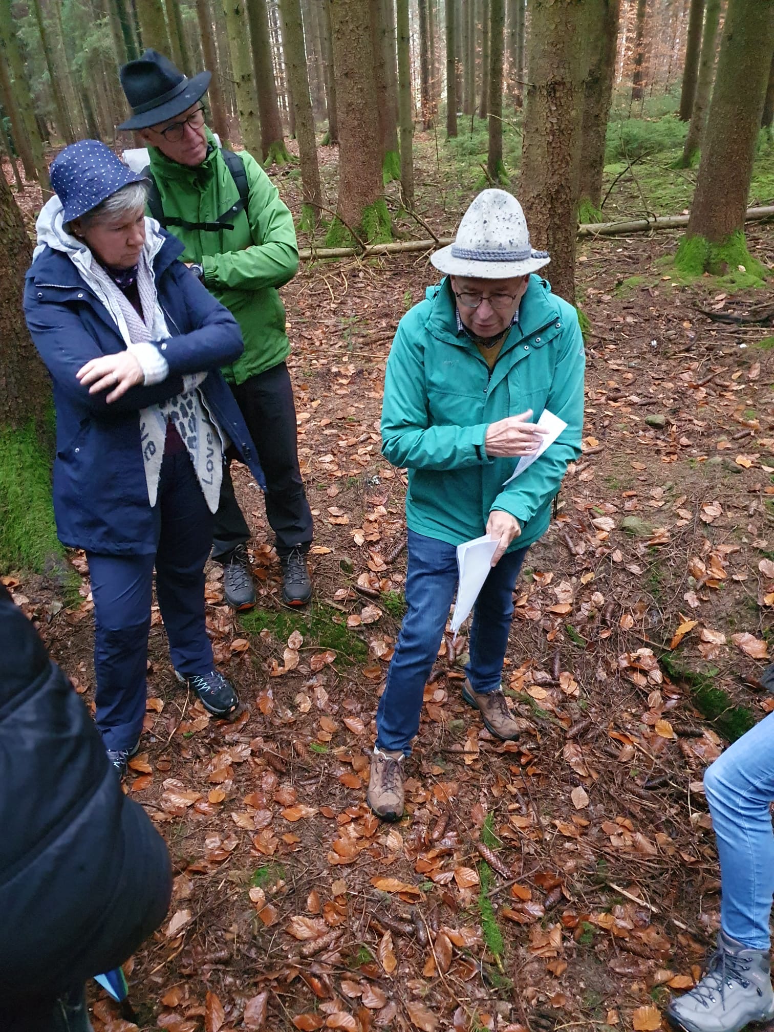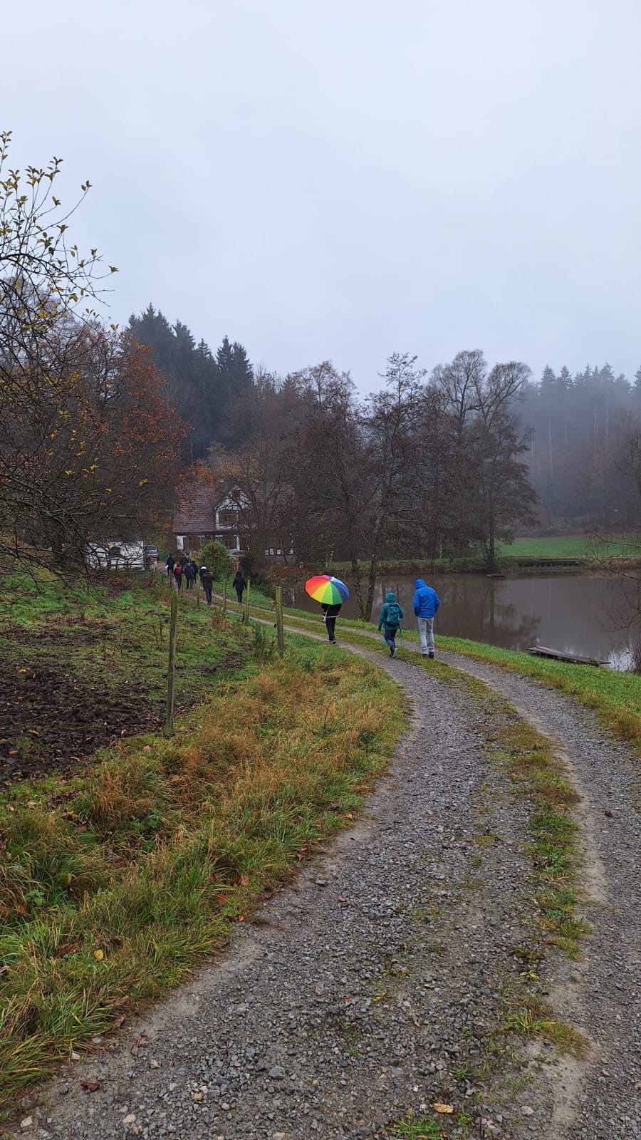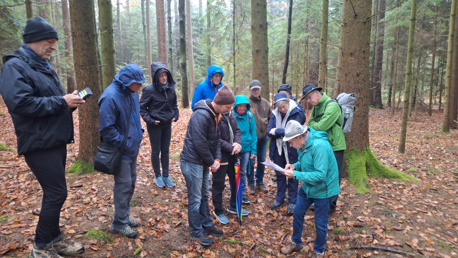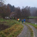 Die Wanderstrecke führte zunächst vorbei an der Teuerzer Sägemühle und anschließend weiter zur Heiligenquelle am Teuerzenweg. Unterwegs erklärte Herr Funk geologische Besonderheiten und berichtete über verschiedene heimische Funde, was die Tour nicht nur landschaftlich, sondern auch fachlich besonders interessant machte. Weiter ging es zum Schärtlensweiher und entlang des Klingenbachs, bevor die Gruppe über die Säghalden zurück nach Geifertshofen gelangte.