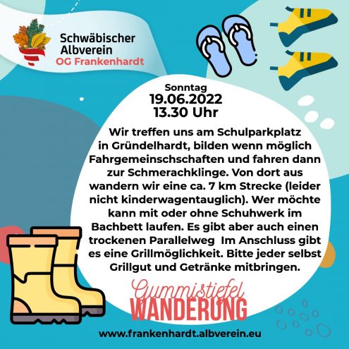 Gummistiefelwanderung So., 19.06.2022, Gründelhardt Uhrzeit: 13:30 Ort: Treffpunkt Schulparkplatz Schulweg 6 Gründelhardt iCalendar Mit dem Laden der Karte akzeptieren Sie die Datenschutzerklärung von Google.Mehr erfahren Karte laden Google Maps immer entsperren zur Übersicht