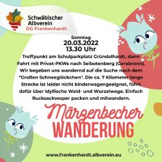 Märzenbecherwanderung So., 20.03.2022, Gründelhardt Uhrzeit: 13:30 Ort: Treffpunkt Schulparkplatz Schulweg 6 Gründelhardt iCalendar Mit dem Laden der Karte akzeptieren Sie die Datenschutzerklärung von Google.Mehr erfahren Karte laden Google Maps immer entsperren zur Übersicht